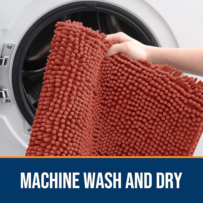 - [LOW PROFILE AND EASY CARE] OLANLY's Chenille Dog Door Mat boasts a slim 1-inch profile, offering a sleek and streamlined appearance. The thoughtful design ensures your doors won't get stuck, and the mat stays securely in place. Cleaning is a breeze β simply shake off any dirt or debris, or toss it in the washing machine for a deeper clean. It dries quickly, so you can be sure it's ready to use again in no time.