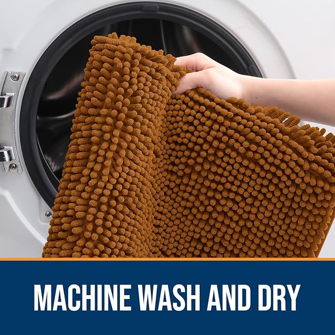 - [LOW PROFILE AND EASY CARE] OLANLY's Chenille Dog Door Mat boasts a slim 1-inch profile, offering a sleek and streamlined appearance. The thoughtful design ensures your doors won't get stuck, and the mat stays securely in place. Cleaning is a breeze β simply shake off any dirt or debris, or toss it in the washing machine for a deeper clean. It dries quickly, so you can be sure it's ready to use again in no time.
