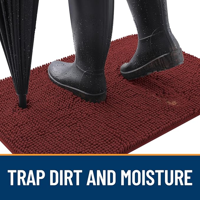 - [LOW PROFILE AND EASY CARE] OLANLY's Chenille Dog Door Mat boasts a slim 1-inch profile, offering a sleek and streamlined appearance. The thoughtful design ensures your doors won't get stuck, and the mat stays securely in place. Cleaning is a breeze β simply shake off any dirt or debris, or toss it in the washing machine for a deeper clean. It dries quickly, so you can be sure it's ready to use again in no time.