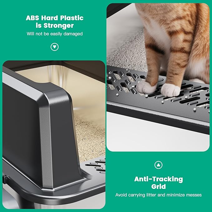 - 【NO ODOR Metal Cat Litter Box】The jumbo metal litter box stainless steel is not easy to be scratched and will not absorb odours, so no matter how long you use the stainless steel litter box extra large there will be no unpleasant odour