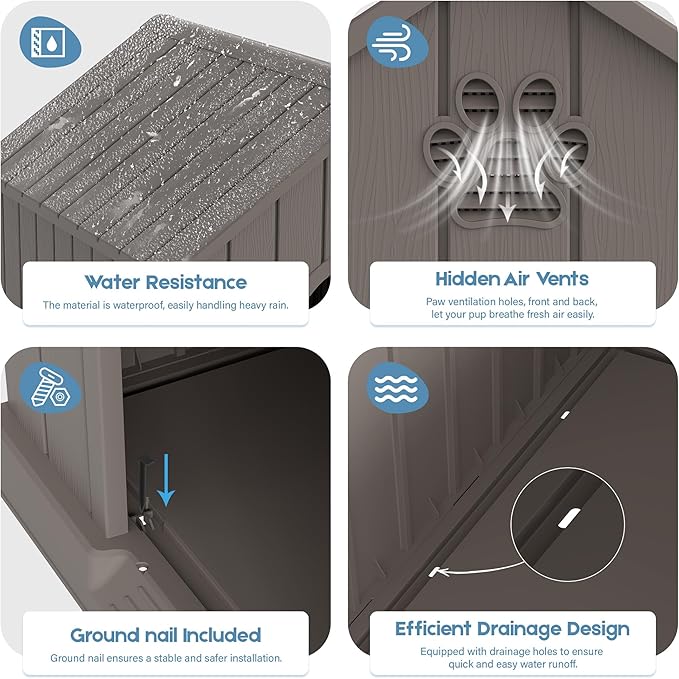 - 🐾【Built to Last】: Crafted from heavy-duty PP (polypropylene), this dog house resists scratches, wear, and water damage. Its weatherproof construction stands up to rain, sun, and harsh elements without warping or cracking.
