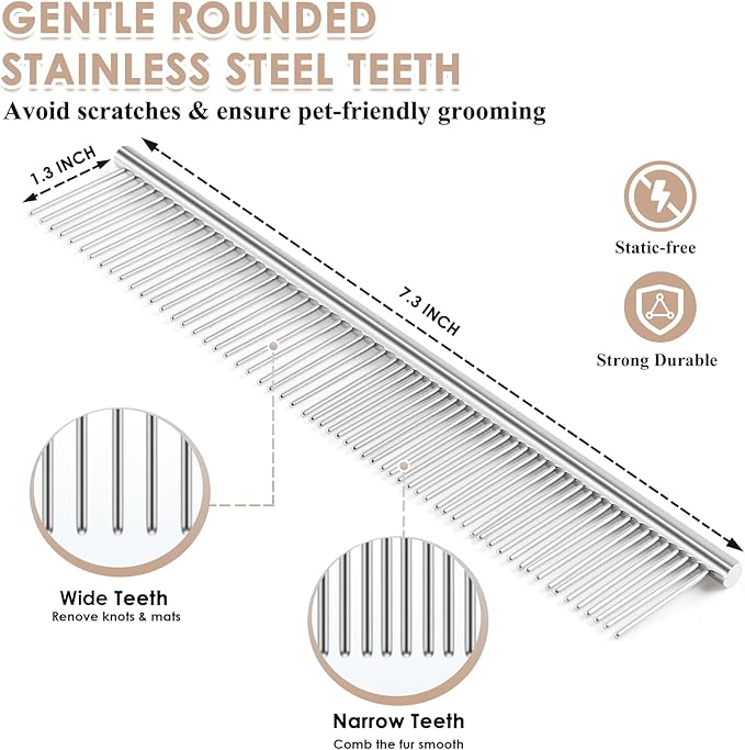 - Complete Grooming Kit Value: 3-in-1 pet grooming kit includes: β Large slicker brush β‘Undercoat rake β’Detangling comb. Safely removes Poodle mats & Persian hairballs. Durable wooden handle withstands frequent use. Vet-recommended for long-haired breeds.