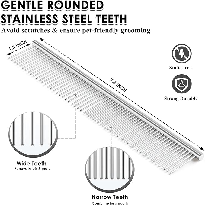 - Complete Grooming Kit Value: 3-in-1 pet grooming kit includes: β Large slicker brush β‘Undercoat rake β’Detangling comb. Safely removes Poodle mats & Persian hairballs. Durable wooden handle withstands frequent use. Vet-recommended for long-haired breeds.