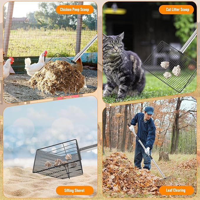 - Multiple Scenarios: Pet pooper scooper is perfect for chicken coops, rabbit cages, and cat litter boxes. Itβs also great for beach sand, garden debris, or cow pens, whether working in a small chicken coop or a larger pet area, long handled cat litter scooper makes cleaning tasks easier and less tiring.