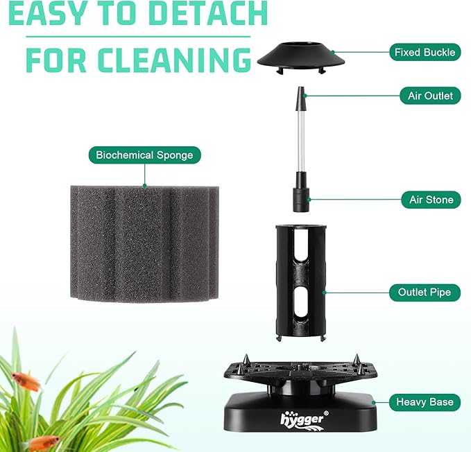 - The Weighted Base: Make the vertical filter easily sink to the tank bottom and keep in place. Please put the foam into the water tank and squeeze out the air until itβs full of water when first used