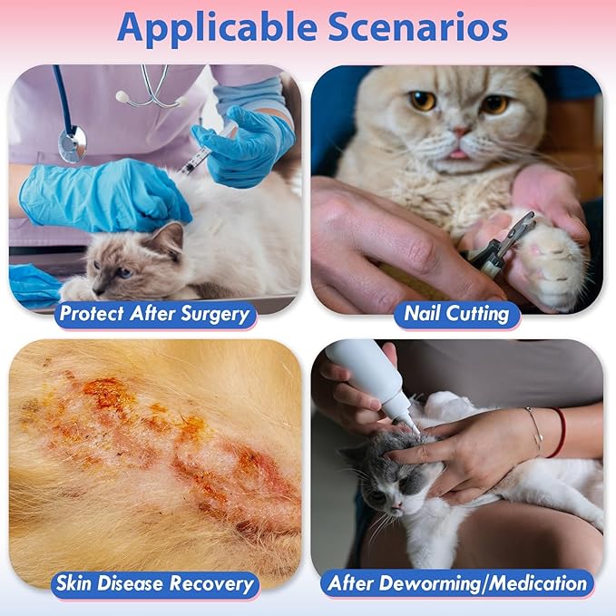 - Applicable for multiple scenarios: Size S: Neck Girth 5.9-7.5''(15-19cm). This collar is suitable for pet wound recovery, dermatology, deworming, nail clipping and other life scenarios, suitable for cats of different life stages