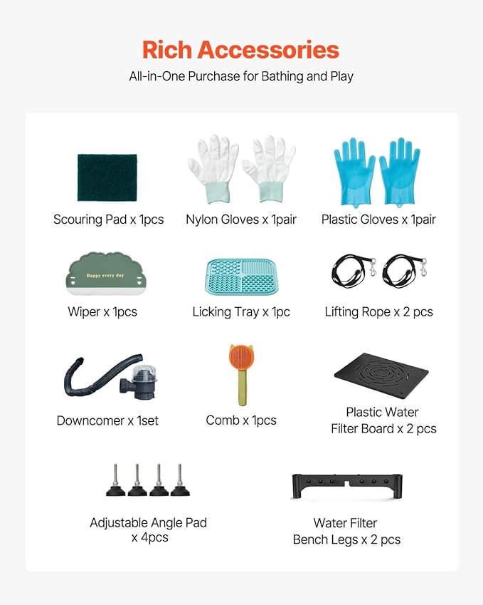 - Complete Accessories: This pet bath station comes with a showerhead, faucet, and a direct connection to a home hose, built for durability. It also includes a licking plate, brush, and gloves, ensuring your pet enjoys a full and enjoyable bathing experience