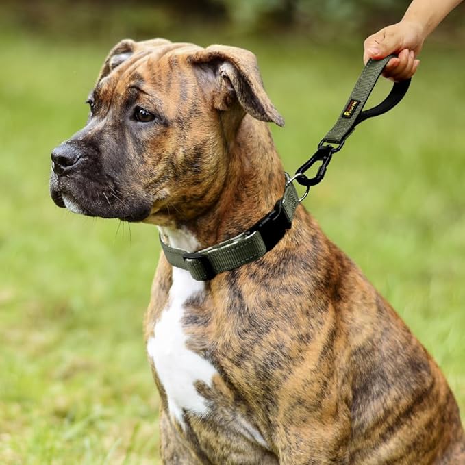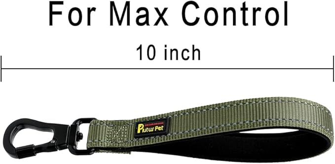 PLUTUS PET Short Dog Leash, Reflective Nylon Padded Handle, Strong Traffic Leash with Carabiner Clip, Perfect for Large or Medium Dogs (10”,Ranger Green)