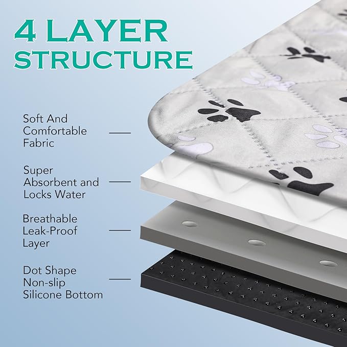 - 🐕GREAT MATERIAL OF 4 LAYERS🐕The outer layer is supremely comfortable and soft, covering a highly absorbent second layer. The inner layer is of a breathable, waterproof material, and the bottom is a nonslip silica gel fabric that won’t slide even with a wiggly dog