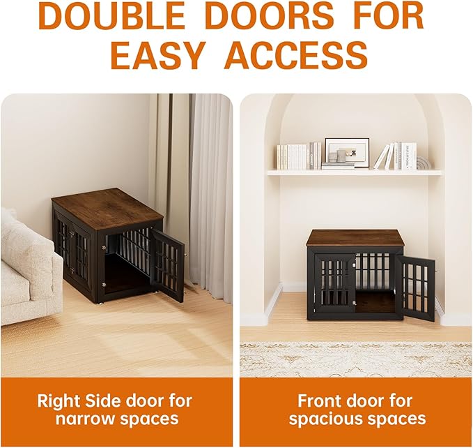 - 【Double Doors Design】The dog kennel furniture has a front door and a side door, your pet will go in and out easily with double doors. The double-doors design can adapt to more different space environments. You can decide whether to open the front door or the side door according to your needs.