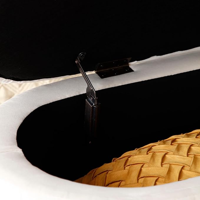 - 【Elegant & Modern Design】Featuring a sleek oval shape with smooth corners and sturdy gold metal legs, this ottoman blends sophistication and style effortlessly. Elevates your living room, bedroom, or entryway decor.