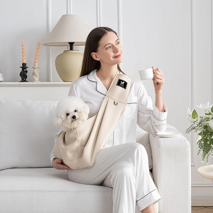 Dog & Cat Carrier Sling, Adjustable Soft Padded Shoulder Puppy Carrier, Hands-Free Dog Carrier Bag with Double Safety Buckles Premium Material for Outdoor Travel (Apricot, M)