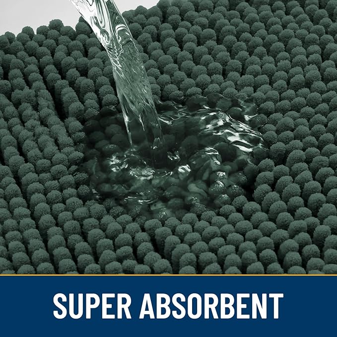 Smiry Dog Door Mat for Muddy Paws 36x24, Absorbs Moisture and Dirt Doormat, Non-Slip Washable Quick Dry Chenille Front Door Mat Indoor Entrance, Entryway Carpet for Inside Floor, Green
