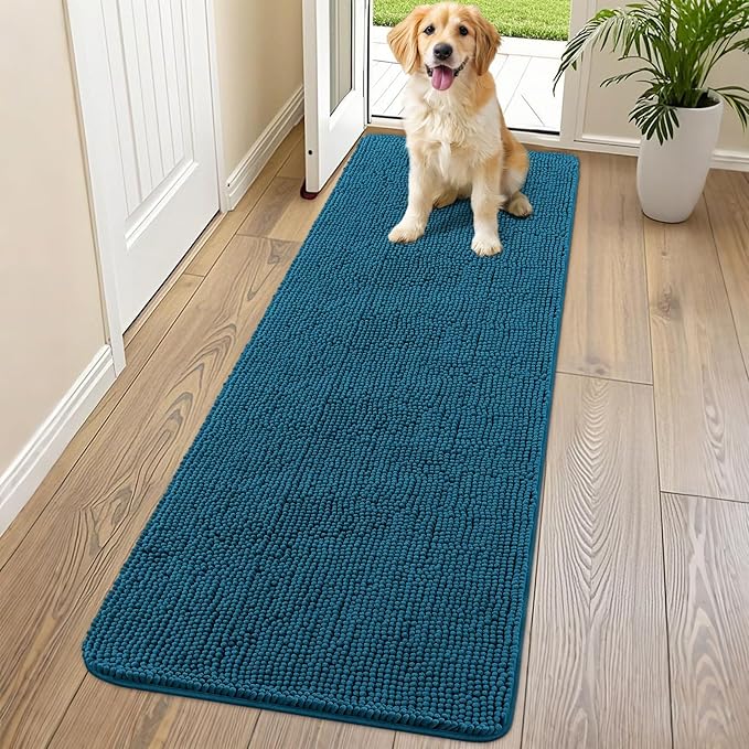 Smiry Dog Door Mat for Muddy Paws 70x24, Absorbs Moisture and Dirt Doormat, Non-Slip Washable Quick Dry Chenille Front Door Mat Indoor Entrance, Entryway Carpet for Inside Floor, Atlantic Blue