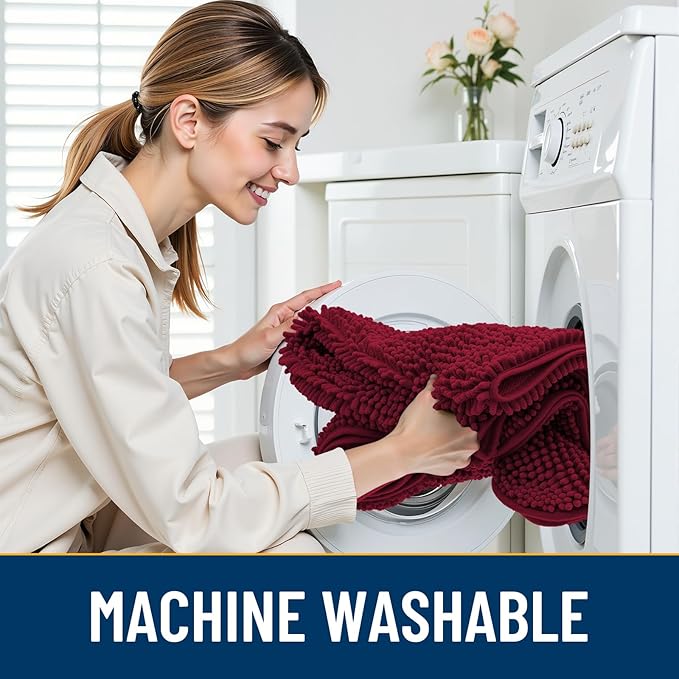 Smiry Dog Door Mat for Muddy Paws 48x30, Absorbs Moisture and Dirt Doormat, Non-Slip Washable Quick Dry Chenille Front Door Mat Indoor Entrance, Entryway Carpet for Inside Floor, Burgundy