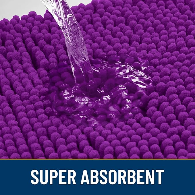 Smiry Dog Door Mat for Muddy Paws 30x20, Absorbs Moisture and Dirt Doormat, Non-Slip Washable Quick Dry Chenille Front Door Mat Indoor Entrance, Entryway Carpet for Inside Floor, Purple