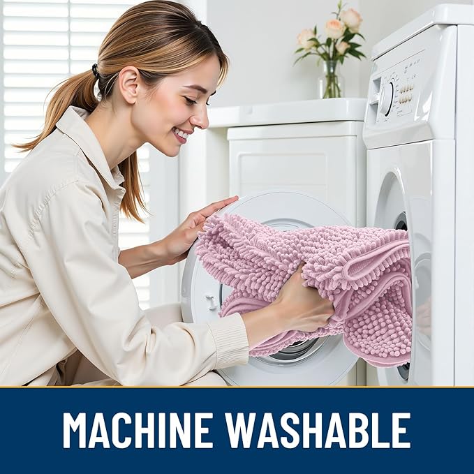 Smiry Dog Door Mat for Muddy Paws 24x16, Absorbs Moisture and Dirt Doormat, Non-Slip Washable Quick Dry Chenille Front Door Mat Indoor Entrance, Entryway Carpet for Inside Floor, Dusty Rose
