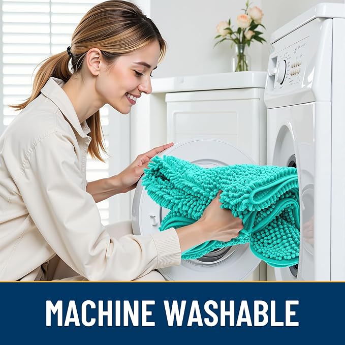 Smiry Dog Door Mat for Muddy Paws 30x20, Absorbs Moisture and Dirt Doormat, Non-Slip Washable Quick Dry Chenille Front Door Mat Indoor Entrance, Entryway Carpet for Inside Floor, Teal