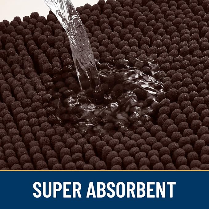 - [Absorbent and Dirt Trapper] High-density chenille dog mat, super absorbent and dirt-catching, whether wet after shower, muddy or moisture bring back by dogs, it can absorb well, so that you and your favorite pet can say goodbye to the wet and mud. It's an excellent choice for use as an entryway door mat, a welcome door mat or a dirt-trapping door mat.