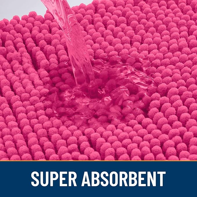 Smiry Dog Door Mat for Muddy Paws 48x30, Absorbs Moisture and Dirt Doormat, Non-Slip Washable Quick Dry Chenille Front Door Mat Indoor Entrance, Entryway Carpet for Inside Floor, Hot Pink