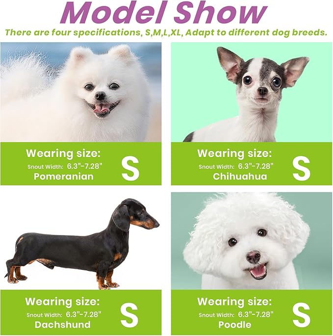 - PLEASE MEASURE BEFORE BUYING:Measure both snout circumference and snout length before purchasing. If your dog's snout length exceeds the size range by about 1 inch, choose the next size up. For long-snout breeds like Dobermans, make sure the snout length fits as well.