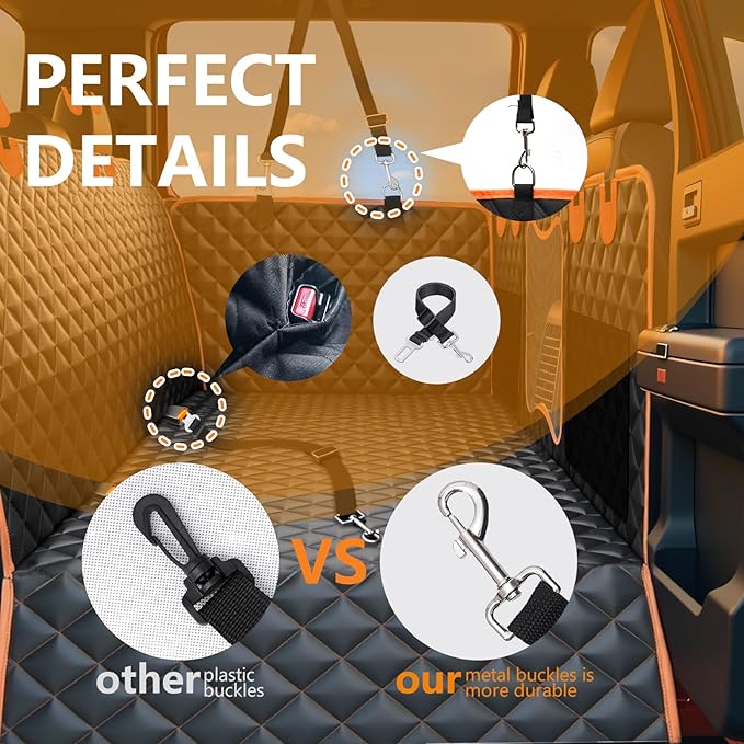 - Heavy Duty, High-Quality Materials:Our dog car seat cover is built with three thickened PP hollow boards, supporting up to 500 lbs to ensure long-lasting durability and a stable, reliable base for your pet — especially large dogs — during travel.