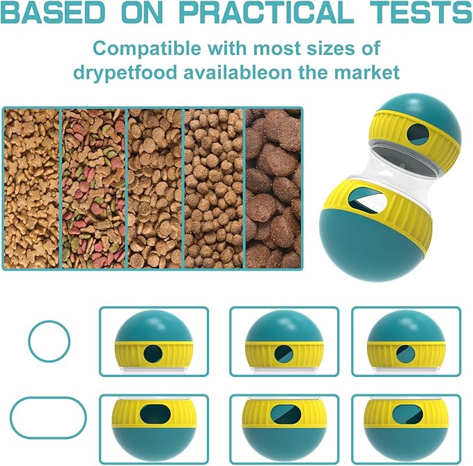 - Food Adjustment Distribution: This enrichment toys for dogs have two adjustable switches, and the food dispensing holes on both sides will release food or kibble as the toy rolls, providing your dog with a food reward that will keep them entertained and physically and mentally exercised at the same time