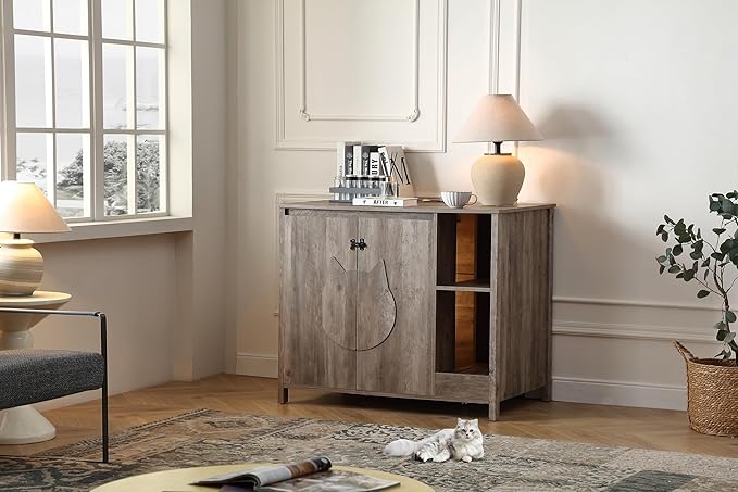 - 4)【Dog proof litter robot cabinet】;We exclusively design this litter robot enclosure box with a adjustable shlelf to prevent dog from entering to eat litter or hurt cat. This shelf can protect your cat, meanwhile, providing a space for you to place cat stuff.