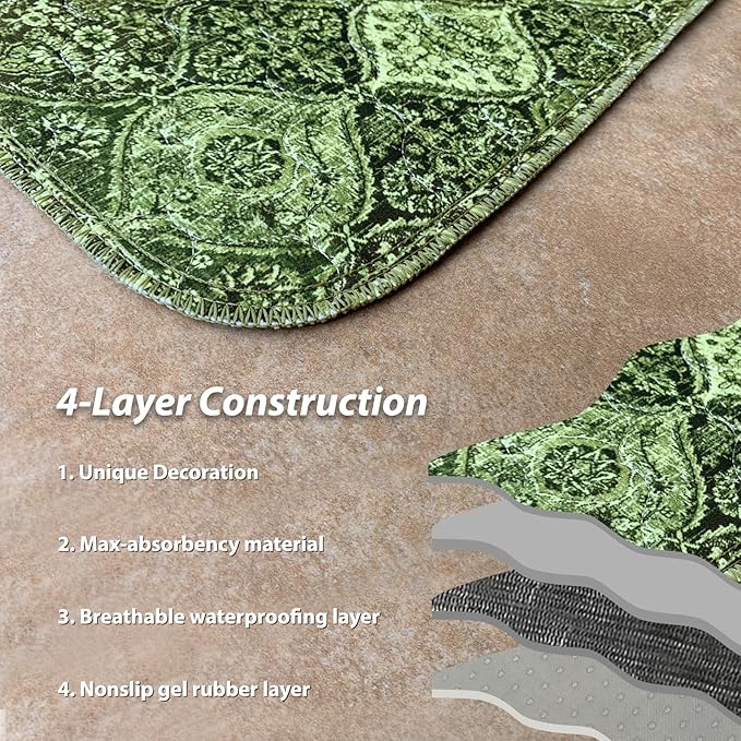 nunubaby Washable Pee Pads for Dogs, Stylish, Non-Slip and Leak-Proof Pee Pads. Reusable Potty Pads for Dogs for Crates and Floors.(Green/Multi, 36" x72")