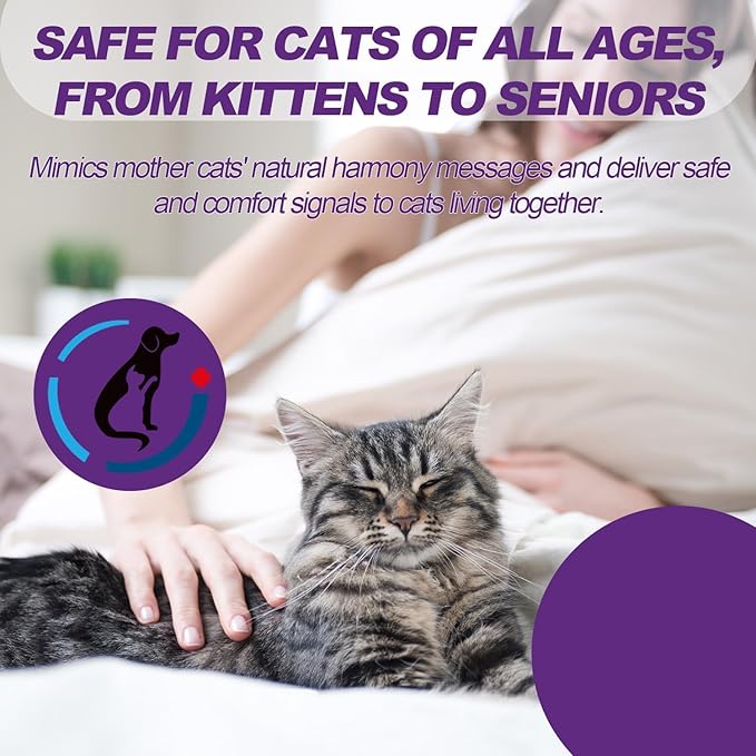 - SAFE FOR CATS OF ALL AGES: Cat pheromone diffuser is suitable for cats of all ages, including kittens and senior cats, promoting a stress-free environment for every feline. The cat calming diffuser is safe for both cats and humans. Replace the cat calming diffuser head every 6 months. Visible reduction in stress-related signs such as excessive grooming, meowing, or restlessness may be observed within 2 weeks of use