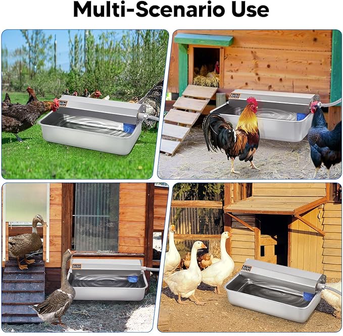- STRONG APPLICABILITY: The automatic water dispenser adopts a wide mouth design, which is very suitable for dogs, chickens, ducks, poultry, horses, cattle, sheep, and other large animals to drink water, and is suitable for installation in yards, farms and pastures and other places