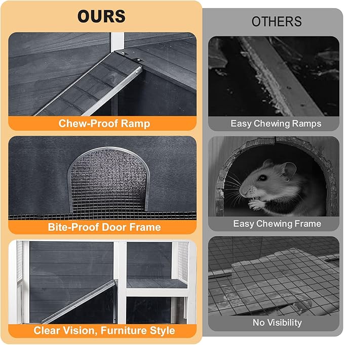 - Acrylic Panels for 270° Visibility: Three transparent acrylic sides allow for full interior viewing while keeping your pets safe and your home stylish. Enjoy watching your pets play and relax without visual barriers.