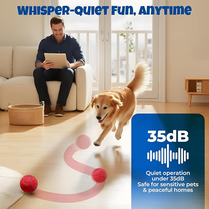 - Real Human-Dog Interaction: Bouncy & Throwable Dog Toys: Toss It, Chase It, Love It – Unlike many self-rolling dog balls, this one is made for both autonomous motion and human-dog bonding. Its high-bounce, lightweight build lets you throw it like a regular dog ball. Reinforce obedience, increase connection, and have fun together