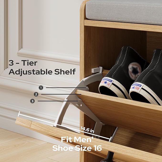 - Stylish and Versatile Design: Our Shoe Storage Bench boasts a classic design that fits seamlessly into any entryway or bedroom, making it the perfect storage solution that complements your decor while keeping your space organized.
