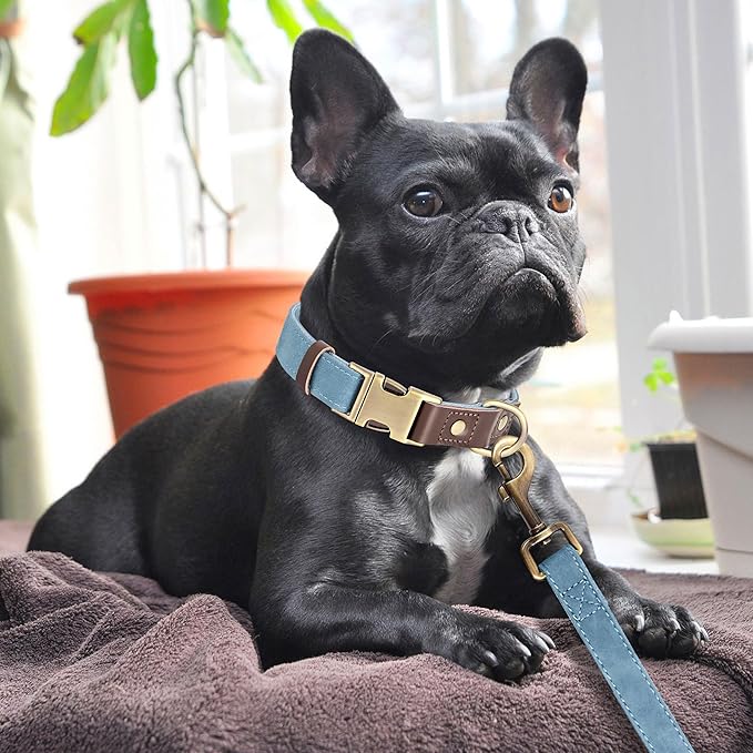 Didog Soft PU Leather Dog Collars for Medium Dogs,Classic Adjustable Dog Collars with Quick Release Metal Buckle,Easy Clean and Comfortable with Nylon Lining,Denim Blue,M Neck 13-19"
