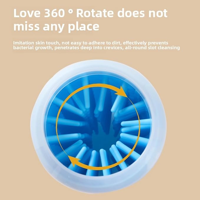 - 【Easy to Use】Add water and a small amount of cleaning agent to the dog paw cleaning brush cylinder. Put the muddy paws into the cleaner, rotate it, gently dry them, and then repeat this operation for all four paws.