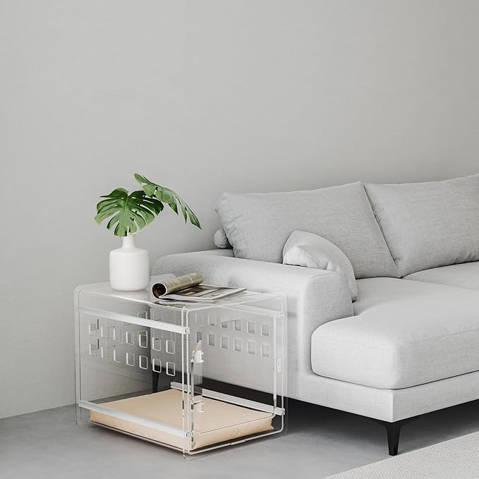 - 【MULTI-FUNCTIONAL】Not only a dog kennel, but also can be a chic coffee or side table, featuring heat bent acrylic with smooth rounded edges ensuring safety for both dogs and people during use.