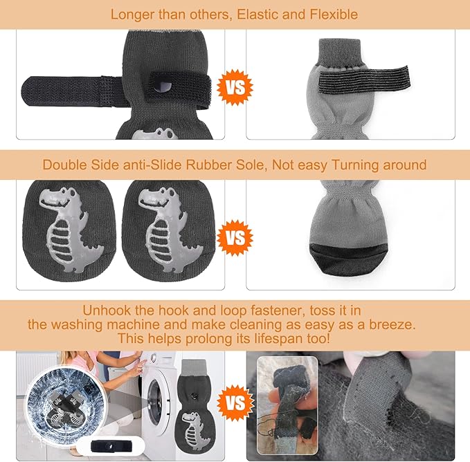 - Non-Skid: For hardwood floor, if your baby has problems who was splaying and keeps slipping on your wooden floors with back legs, we suggest you would buy these the soles which have anti-slip adhesive, which can provide extra traction. Besides, wearing a non skid sock prevents dogs from licking and irritating the wound further aid in healing foot wounds.??Please note we have design patent to protective this exclusive design