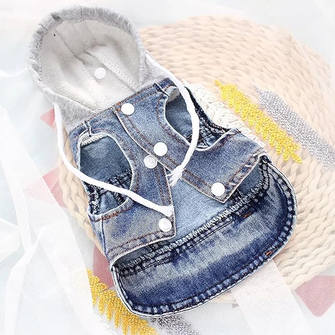 • 【Adjustable Fit & Easy Dressing】 The back features a durable D-shaped metal buckle for leash attachment, combining practicality with retro denim style. The stylish lapel collar and secure button closure make dressing your pup effortless, Fits chest 11"-20" (measurement guide included)