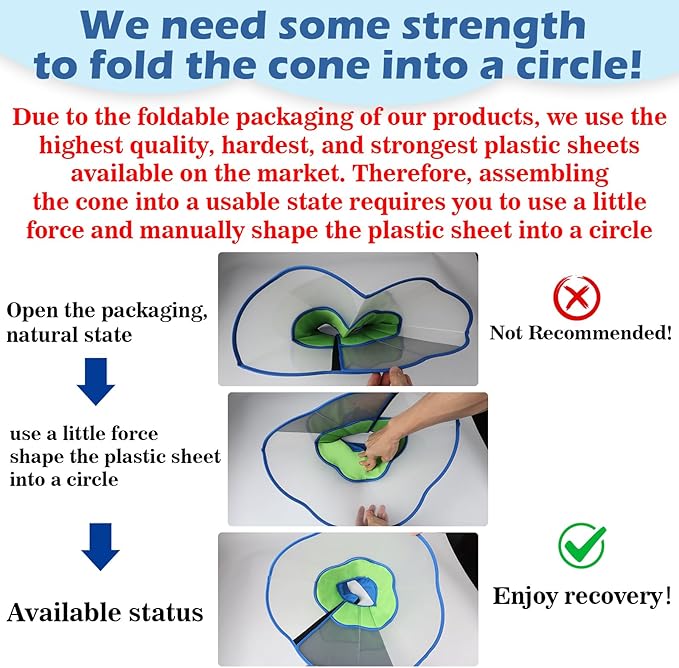 - 【Purchase Notes】---1. Please make sure to check our size chart before making a purchase 2. As it is a folded product, it is prone to deformation during transportation. Please restore the plastic sheet to its original shape by hand after assembling the cone!If you have any questions about size or quality, please contact us as soon as possible instead of choosing to return or refund, as it will waste and miss the best treatment time for your dog! (We have a 7*24-hour fast response service! )