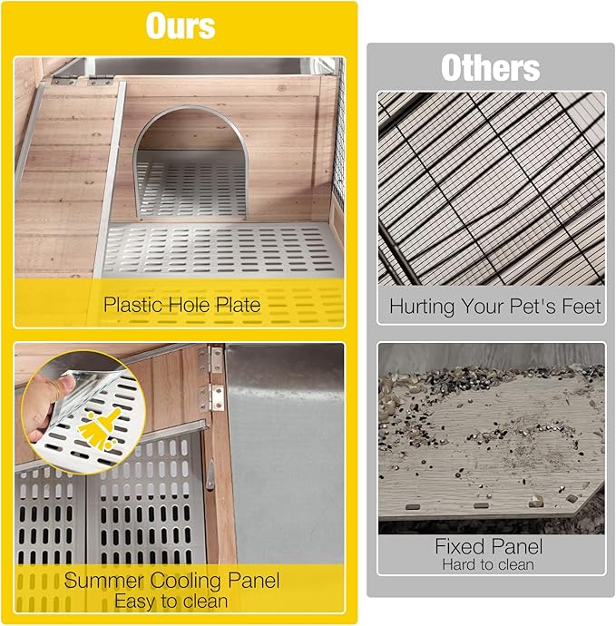 - Easy to Clean: The front and back pull-out deepening trays (with tray lock) and the openable roof also make it more convenient for you to clean the interior easily. Wire mesh that keeps pets from stepping directly on feces