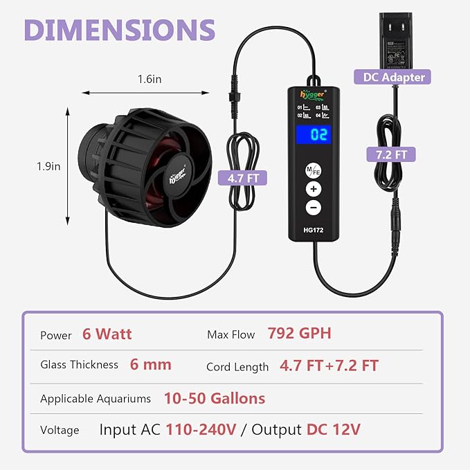 - Super Easy To OperateοΌThe included controller provides an intuitive digital display and easy-to-use customization options, allowing users to adjust wave patterns, speed, and frequency of waves to suit the specific needs of their aquarium setup