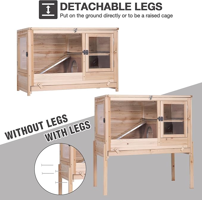 - ADJUSTABLE AND REMOVABLE LEGS Comes with sturdy, removable legs for versatile placement. Use as a free-standing bunny cage or on a flat surface.