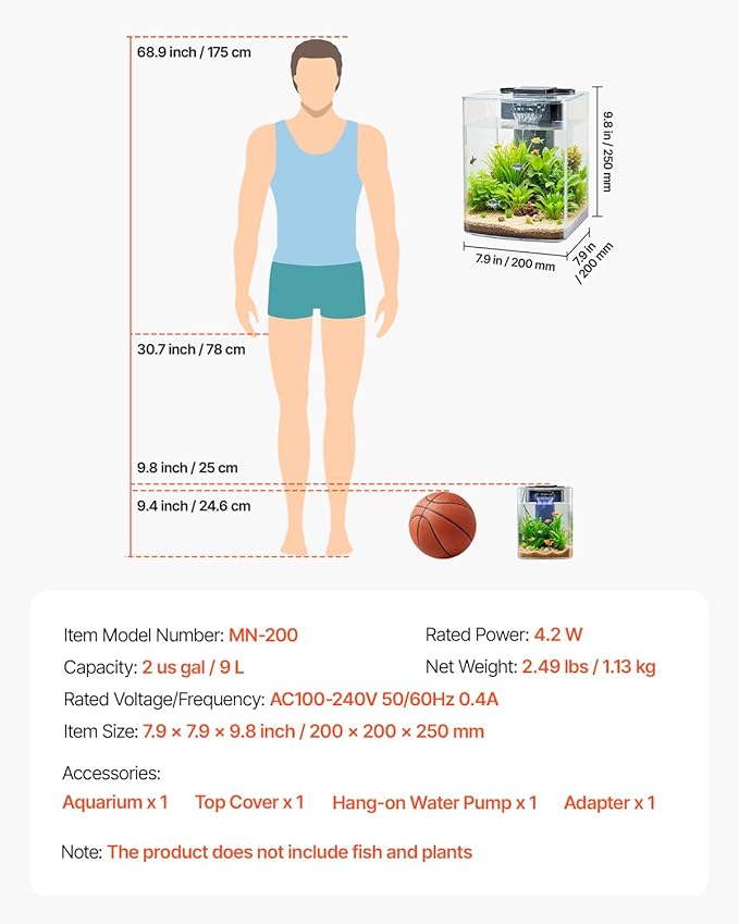 - Included Components : Adapter x 1, Aquarium x 1, Hang-on Water Pump x 1, Top Cover x 1