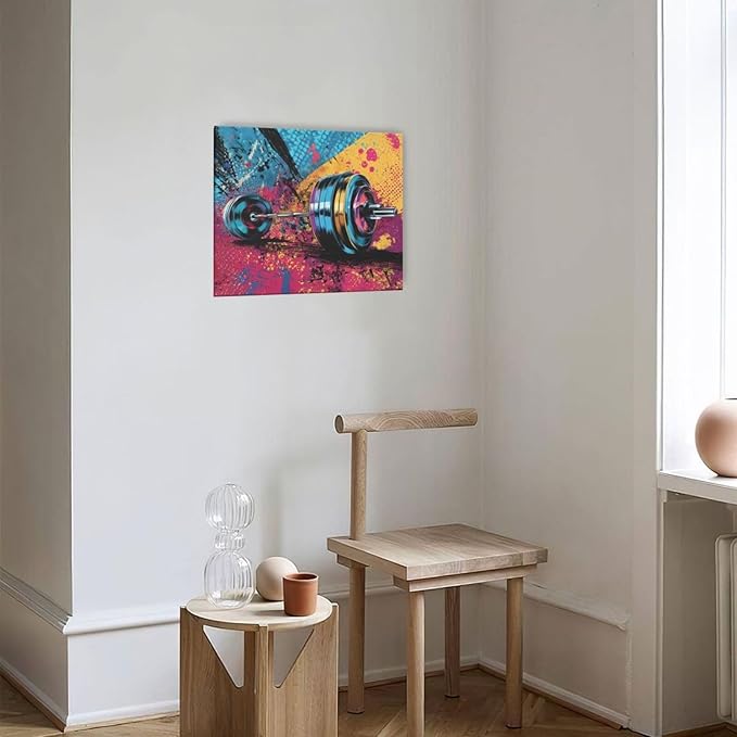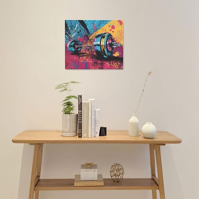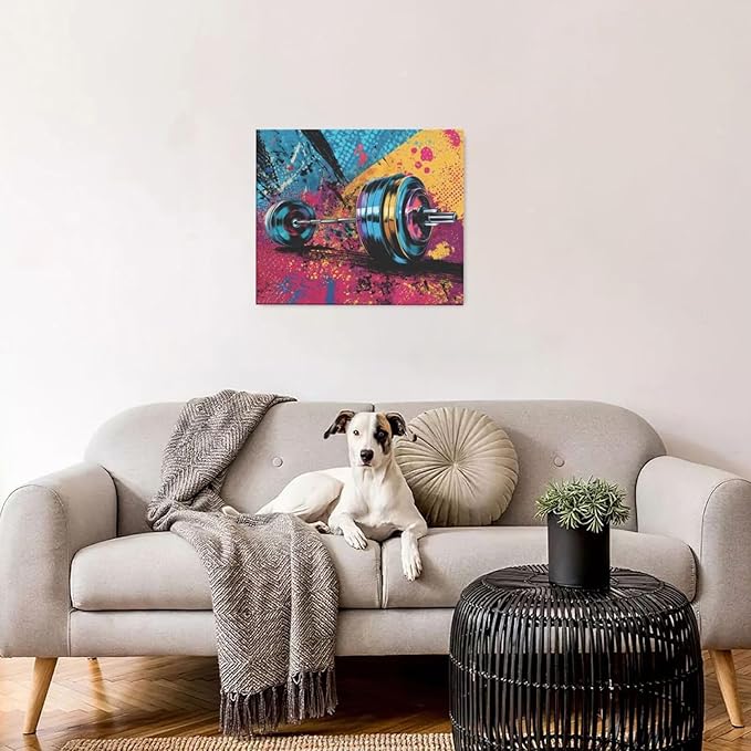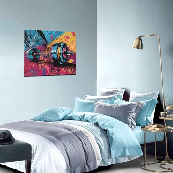 Gym Wall Art Weightlifting Fitness Canvas Wall Decor Barbell Sports Training Pictures Painting Banksy Street Graffiti Print Artwork Framed Decorations Gifts for Sports Lovers Gym Living Room Bedroom 20"x24"