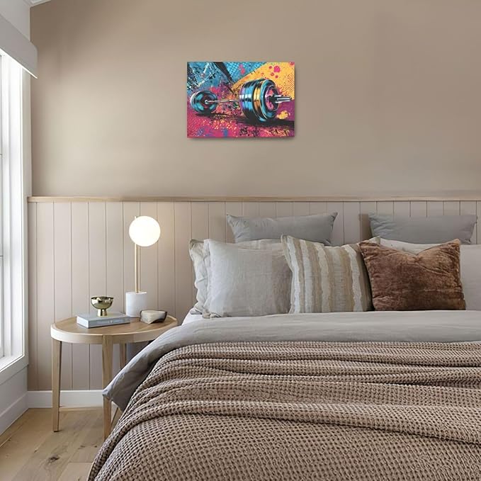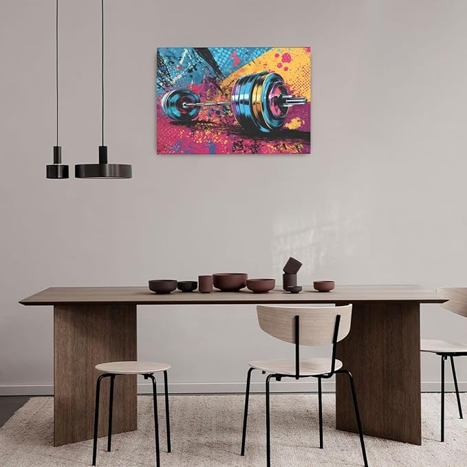 Gym Wall Art Weightlifting Fitness Canvas Wall Decor Barbell Sports Training Pictures Painting Banksy Street Graffiti Print Artwork Framed Decorations Gifts for Sports Lovers Gym Living Room Bedroom 16"x24"