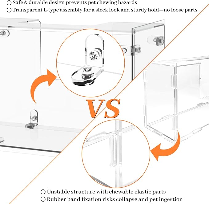 - Durable Acrylic Construction: Crafted from durable acrylic material, this hay feeder is built to last, outperforming traditional wood or plastic hay racks. Its L-shaped fixing assembly securely fasten each acrylic panel, creating a sturdier and more reliable construction than other acrylic hay holders