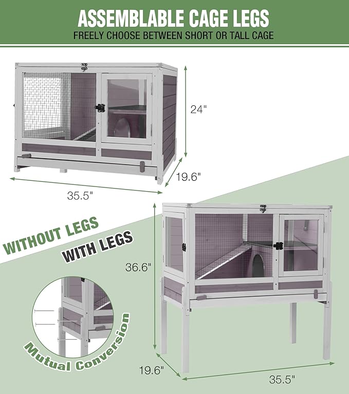- 𝐀𝐝𝐣𝐮𝐬𝐭𝐚𝐛𝐥𝐞 𝐃𝐞𝐭𝐚𝐜𝐡𝐚𝐛𝐥𝐞 𝐋𝐞𝐠𝐬 - With detachable legs, this guinea pig cage offers flexible setup. Use it as a standalone or elevated unit, suitable for various indoor setups