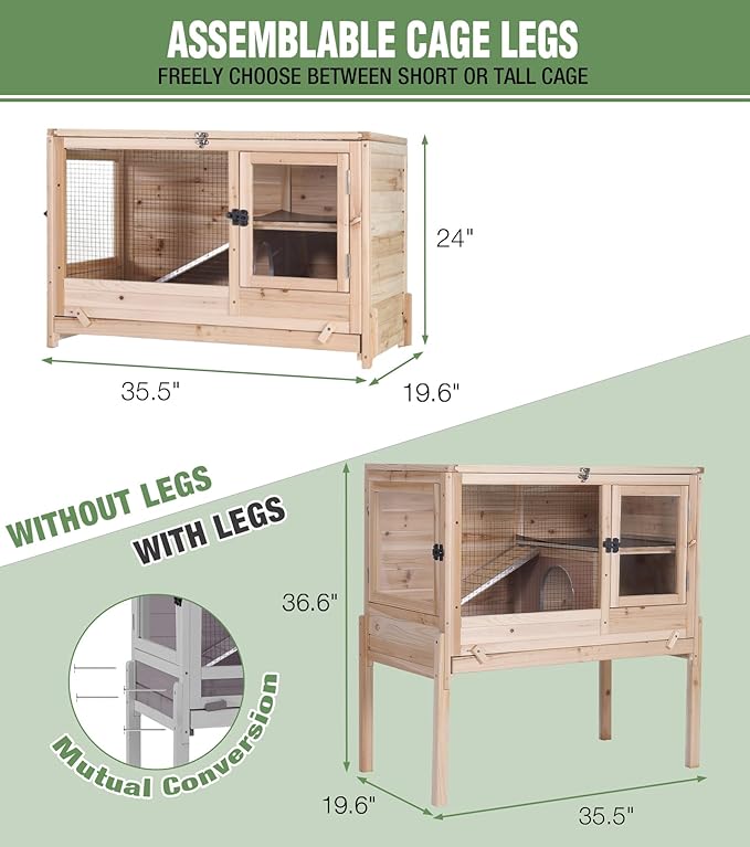 - 𝐀𝐝𝐣𝐮𝐬𝐭𝐚𝐛𝐥𝐞 𝐃𝐞𝐭𝐚𝐜𝐡𝐚𝐛𝐥𝐞 𝐋𝐞𝐠𝐬 - With detachable legs, this guinea pig cage offers flexible setup. Use it as a standalone or elevated unit, suitable for various indoor setups