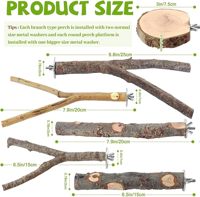 - Varied Shapes for Enrichment - Includes naturalistic branches, forks, and platforms to create stimulating climbing environments that mimic birds' wild habitats.